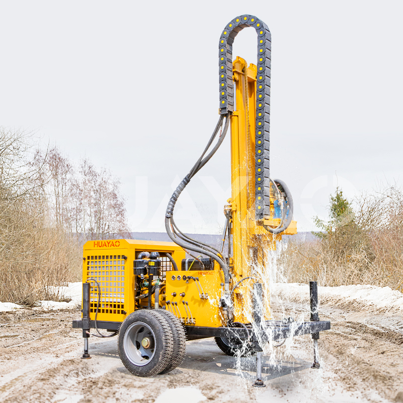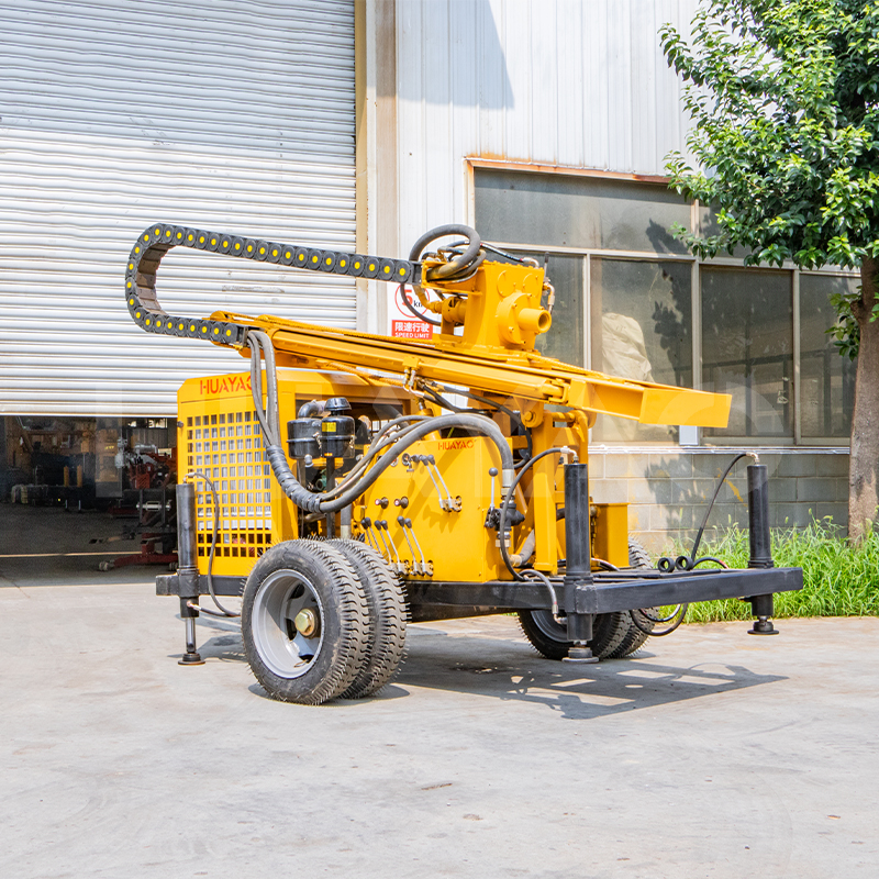 该钻机是一种多功能的水气动钻机。 A。配备高性能气动系统和优化的机械结构,以及长钻杆和长行程速度倍增机构动力头,可有效减少导杆更换次数,提高钻井效率,降低钻井堵塞和燃烧的风险,从而加快钻井速度。 B.操作方便,安全,多档前进和反向旋转速度设计使其易于应对不同的钻孔条件并处理意外情况。 C.适用于各种地质条件,包括坚硬的岩层和复杂的地形,例如山区的水平钻探,它显示了其强大的适应性和钻探能力,并且可以在200米甚至更深的岩石上钻孔。能满足不同类型的钻井需求,如水井、地热井、地质勘探孔等。 D.钻机有两种底盘装置: 4轮拖车式和履带式。特别是通过其轨道设计,它可以轻松地在崎rough不平的地面上移动,从而增加了操作的灵活性以及到达远程工作点的能力。