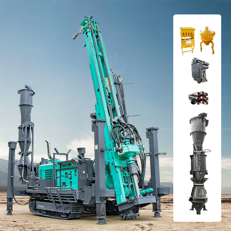 华耀钻机的反循环钻井系统采用了最先进的国外反循环钻井技术。钻井过程中产生的粉尘可被除尘器有效收集,从而避免对环境造成污染;钻井产生的岩渣则可通过旋流分离器进行收集,以便地质勘探部门进行取样和分析。该钻机是地质勘探钻井及其他深孔作业的理想选择。它可以使用压缩空气进行反循环钻井,适用于各种地层。钻机框架的升降、钻杆的装卸、旋转装置的驱动以及外伸臂的伸缩等功能均通过液压系统来实现,这大大降低了工人的劳动强度,提高了施工效率与工程质量。